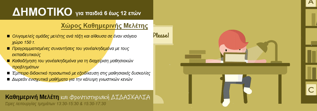 Πρόγραμμα φροντιστηριακής μελέτης για μαθητές δημοτικού.
